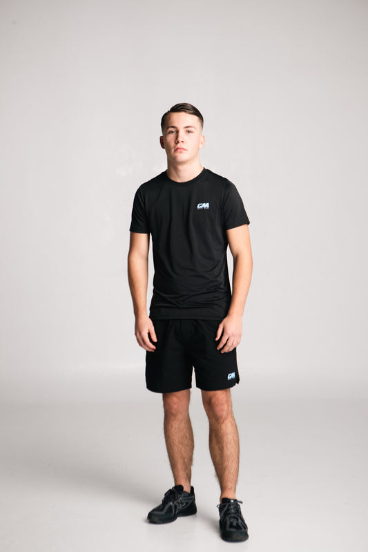 Graft Mode Game Playing Shorts Black With Baby Blue Logo